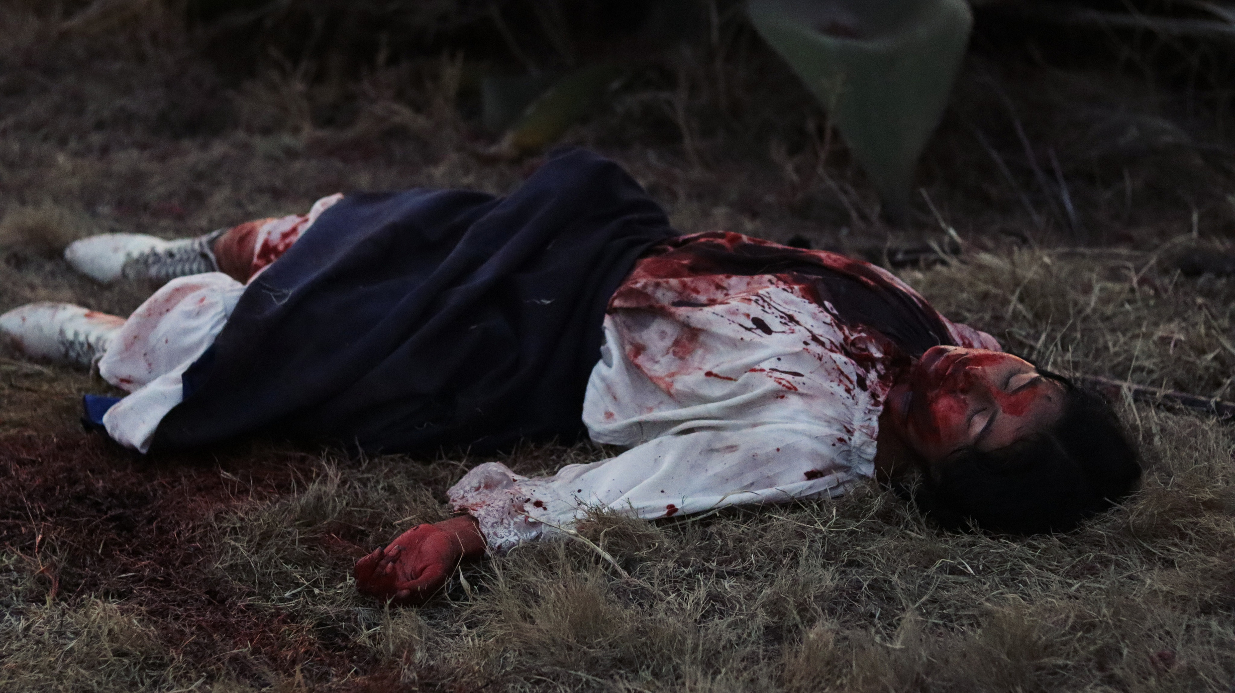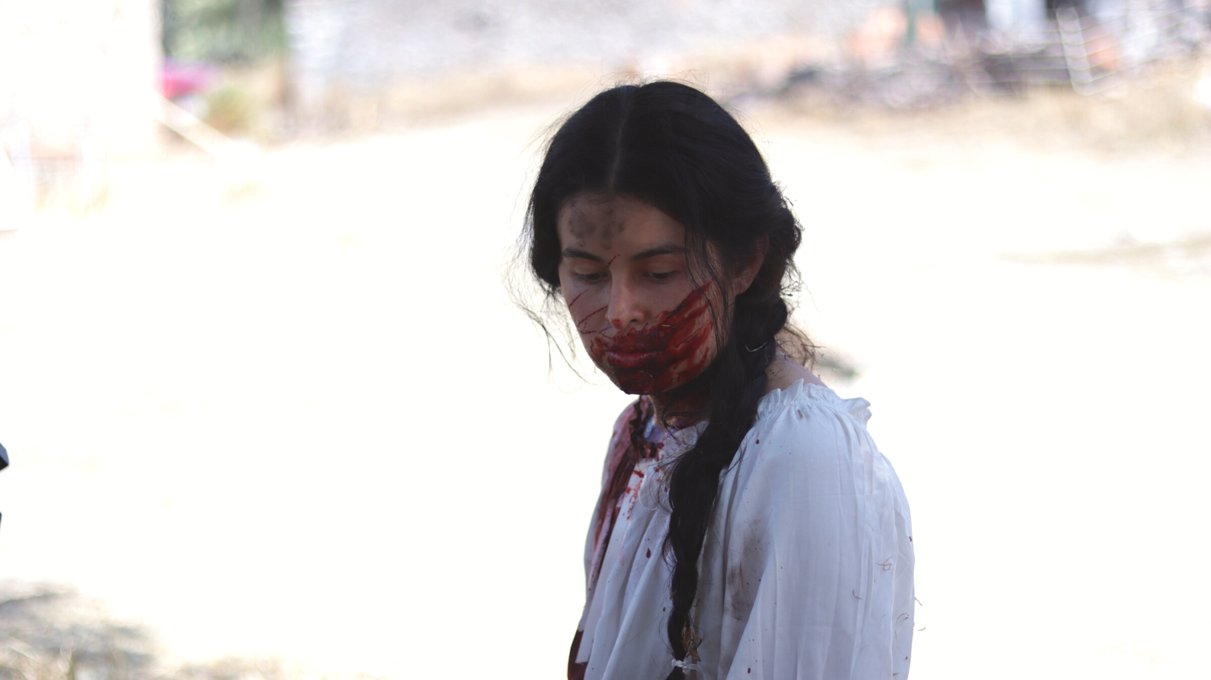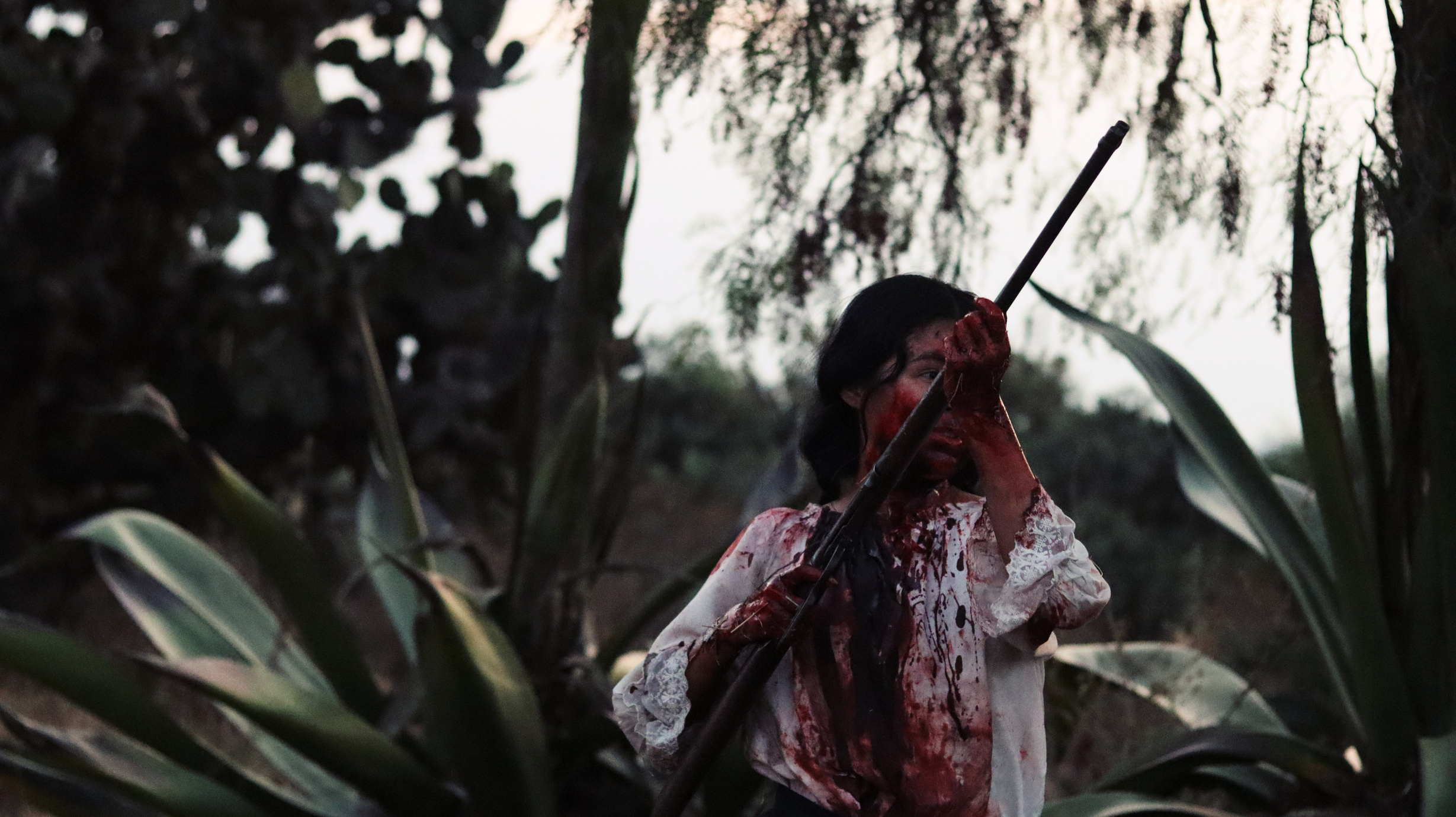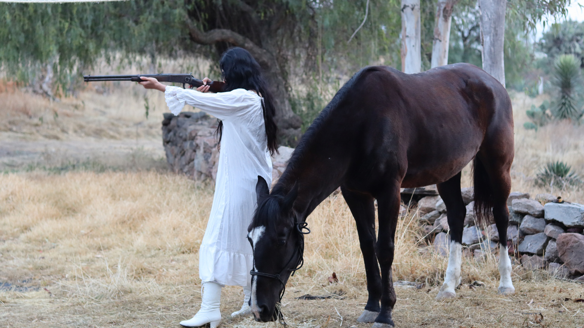 La habitación donde Isabel duerme, solo tiene paja, un espejo roto y algunas cobijas que acomodó a manera de cama. Por la madrugada, los relinchos y pataleos de su yegua la despiertan. Se incorpora, su yegua relincha un par de veces más. Se talla los ojos, manchándose de sangre la cara. Al sentir la humedad, se asusta. Observa sus manos ensangrentadas y levanta la cobija de un tirón, su camisón blanco tiene una mancha pequeña de sangre. A pesar de estar asustada, deja la habitación para auxiliar a su yegua. Isabel calma a su yegua con caricias y su voz. Levanta su rifle y lo carga, buscando al responsable, pero no encuentra nada.