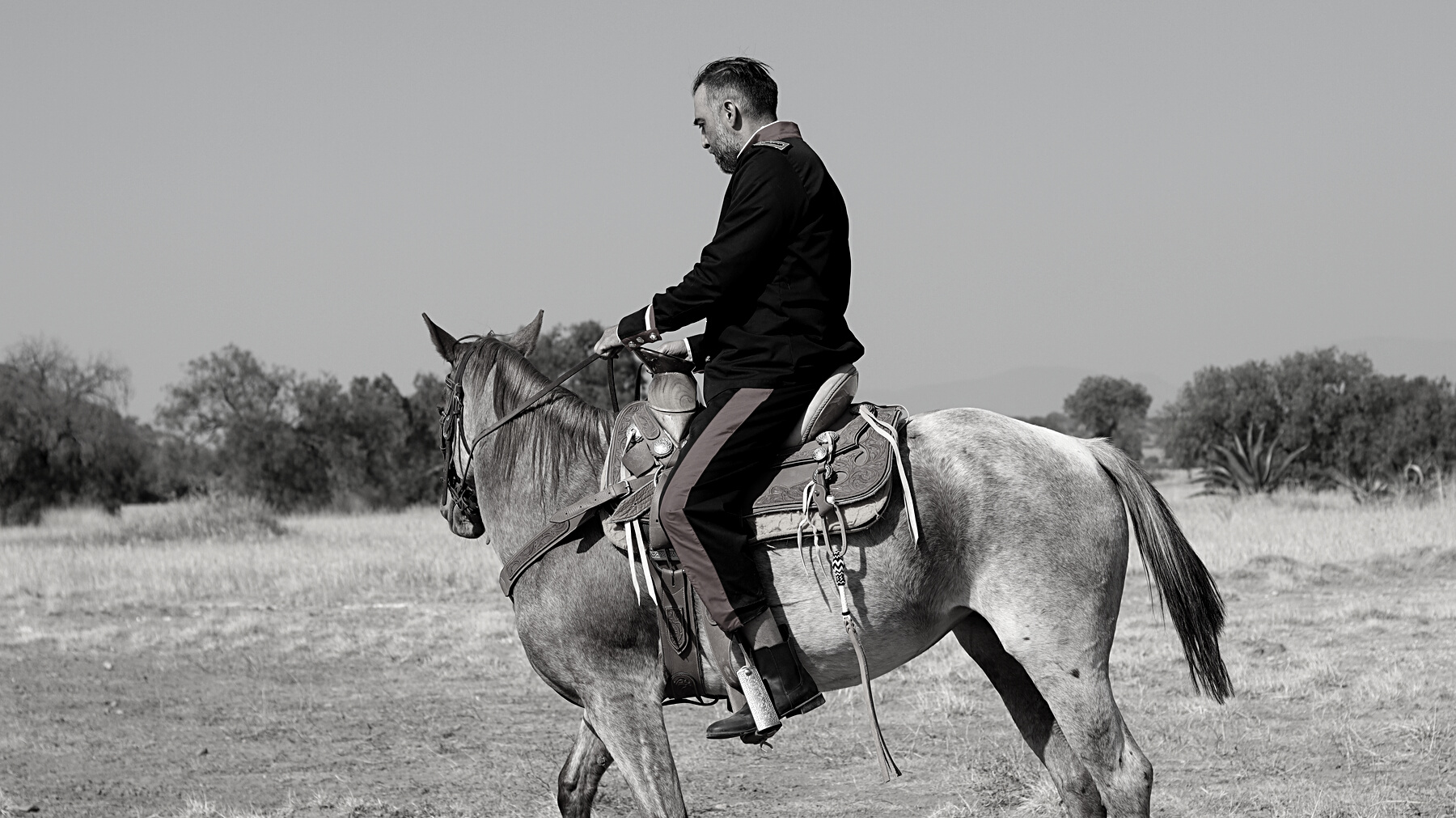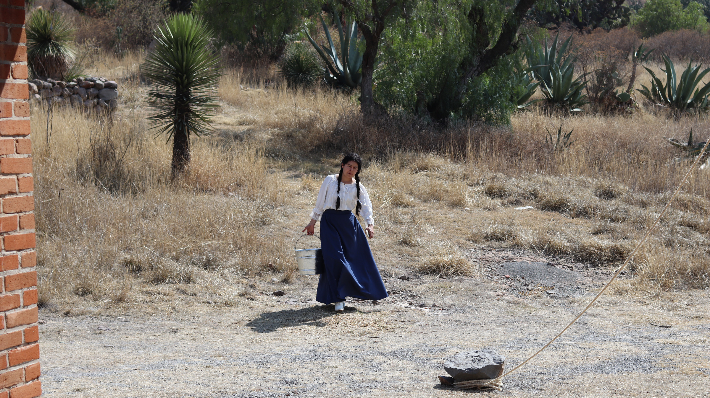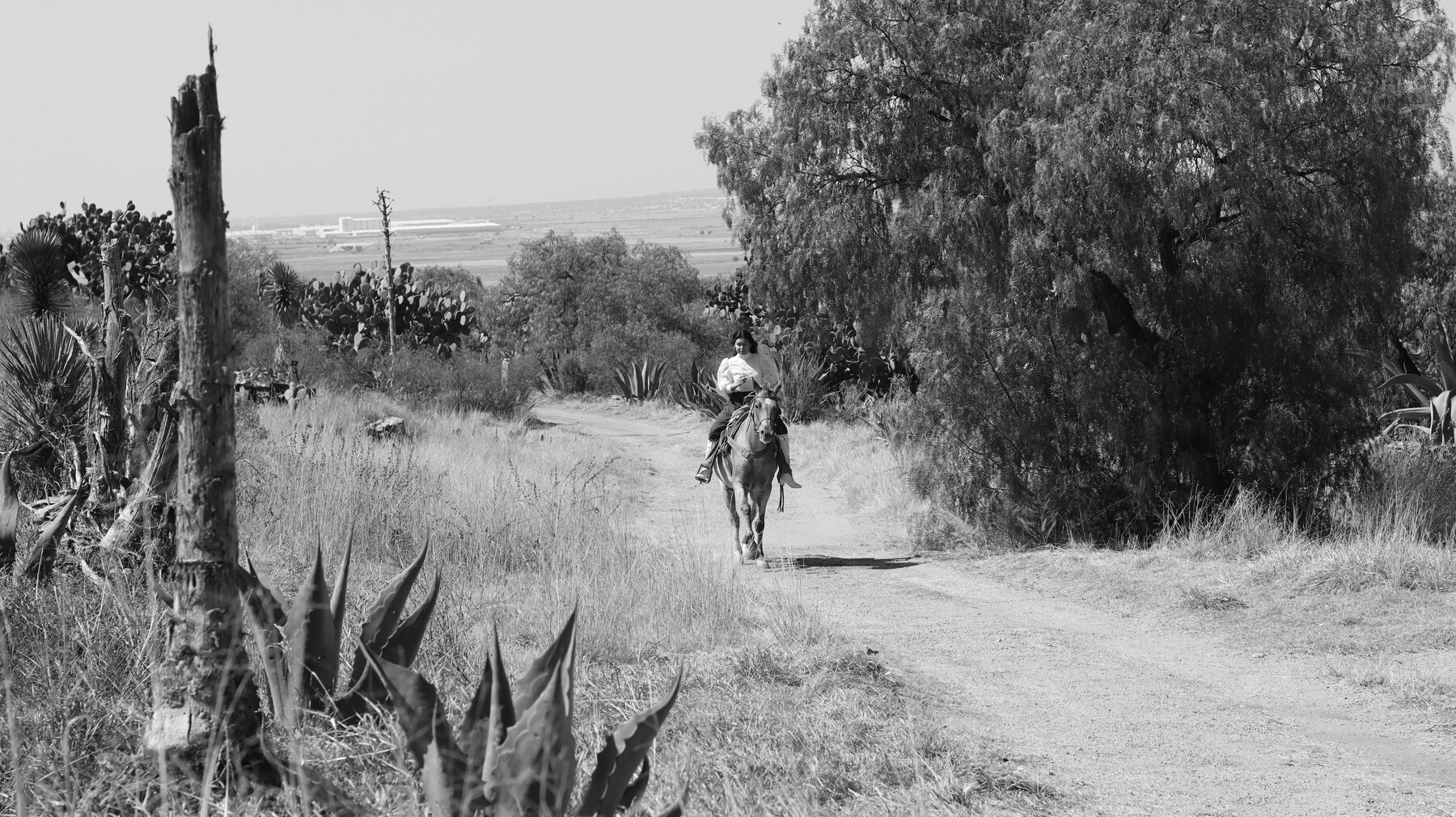 México revolucionario. Isabel, una adolescente rebelde, huye a caballo, a través del semidesierto. Carga con algunos costales y un rifle.